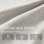 The cotton-linen fabric is amazing! It looks so textured and high-end, yet feels incredibly soft to the touch. My cat jumps on it and doesn't even want to scratch it. The off-white color is perfect – a warm white, not a cold one.When paired with the throw blanket I bought myself, it's simply a perfect match!