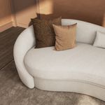 The sweeping curve of the back is not just a design statement; it's a masterpiece of craftsmanship. The fabric is tailored flawlessly over the complex form, with no pulling or gaps. Absolutely stunning.