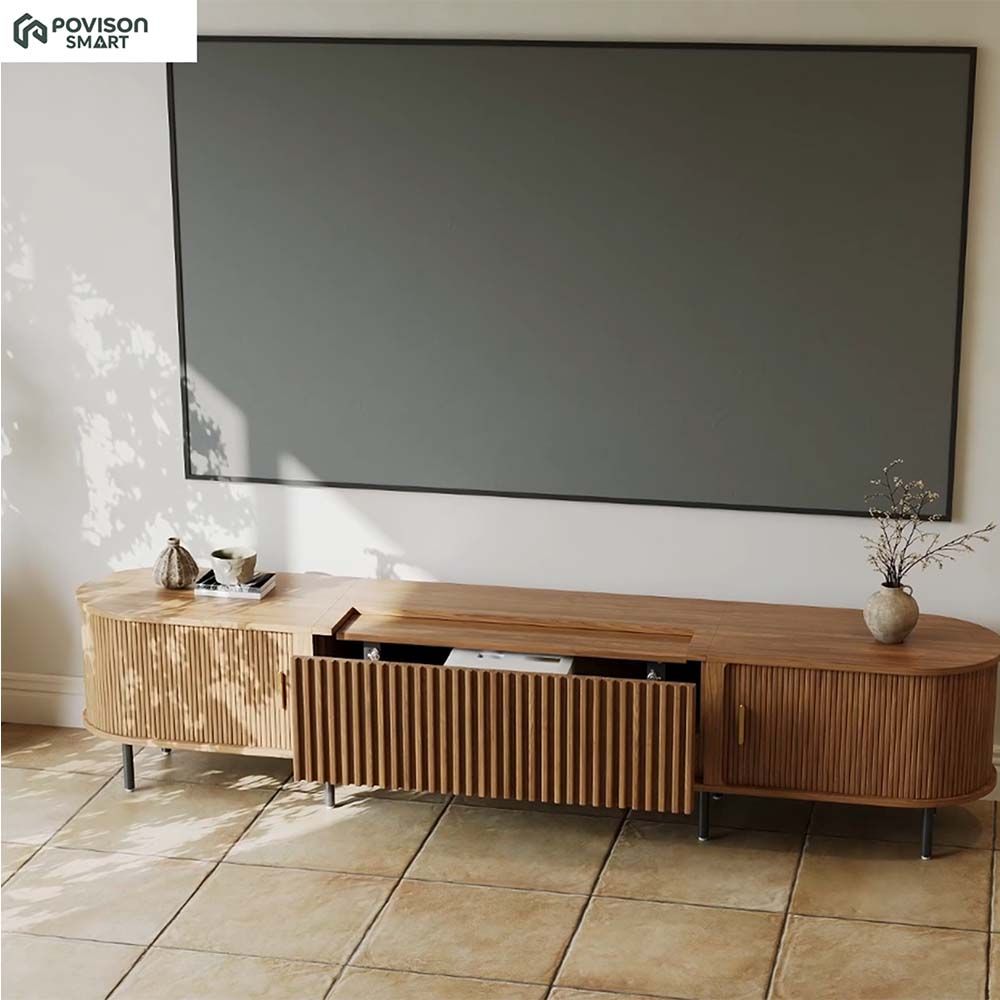 My husband and I were looking for something sleek yet functional, and this 86” motorized TV stand fit the bill perfectly. We have a small space, so the electric cabinet was a game-changer—it allows us to hide away our media equipment with just a press of a button. The design is modern and minimalistic, blending seamlessly with our decor, and the build quality feels premium. The motorized drawer works smoothly, making it super convenient to access our devices when needed. It’s also been great for keeping our space looking clean and clutter-free. If you’re looking for a stylish, space-saving solution with smart functionality, this is definitely worth considering!
