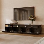 This TV stand is absolutely stunning—it has such a refined, high-design look that instantly elevated my space. The LED lights at night make the whole unit glow and highlight the display shelf beautifully. Tons of storage below for devices and everyday clutter. It arrived packed in a wooden crate—super secure with no damage at all. One small thing: it does include a remote for the lights, but you’ll need to buy the battery separately. Totally worth it!