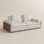 Modern 2-3 Seater Beige Deep Seat Sofa with Wood Base & Exposed Wood Frame – 27.6 Seat Depth