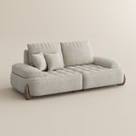 ❤I've had this sofa for six months. The packaging was very secure, and it arrived without any scratches. The delivery service was very thoughtful. The sofa has a lovely design, and the backrest is easily removable. I love using it as a pillow, and it's also very soft and comfortable when used as a backrest. The cat scratching pad is also very reliable. My puppy🐕 accidentally spilled some water, but thankfully the fabric is very waterproof and cleaned it up quickly. The wooden corners match my floor perfectly, and I love the natural and unique design. It's very cute. The seating is spacious, so friends can watch movies together, and my puppy and I often relax there.Love it!💕