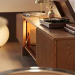 The center compartment with the built-in lighting has quickly become my favorite feature, as it not only highlights our audio equipment nicely but also adds a warm, ambient glow that makes the entire setup feel more intentional and refined.
