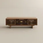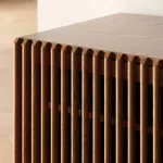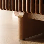 The wood finish is beautiful in person, with a warmth and depth that photos don’t fully capture, and the slatted design adds a lot of visual interest without making the piece feel too busy or overwhelming in the room.