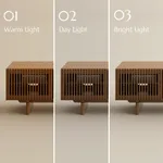 Illuminate your collection with precision. Use the remote to toggle 6 brightness levels, highlighting your AV gear through the glass and slats while providing perfect visual comfort.